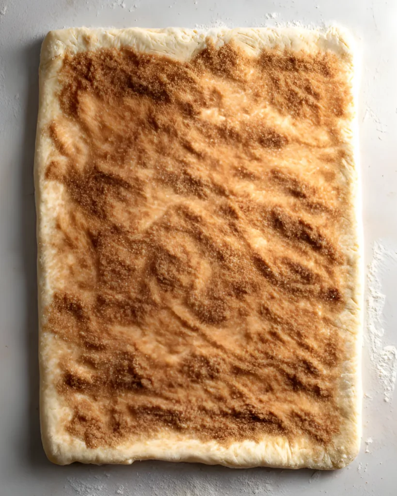 Next, spread softened butter across the surface, leaving a small border around the edges. Then sprinkle brown sugar evenly, followed by cinnamon. This layering creates that signature swirl that makes best homemade cinnamon rolls so irresistible.