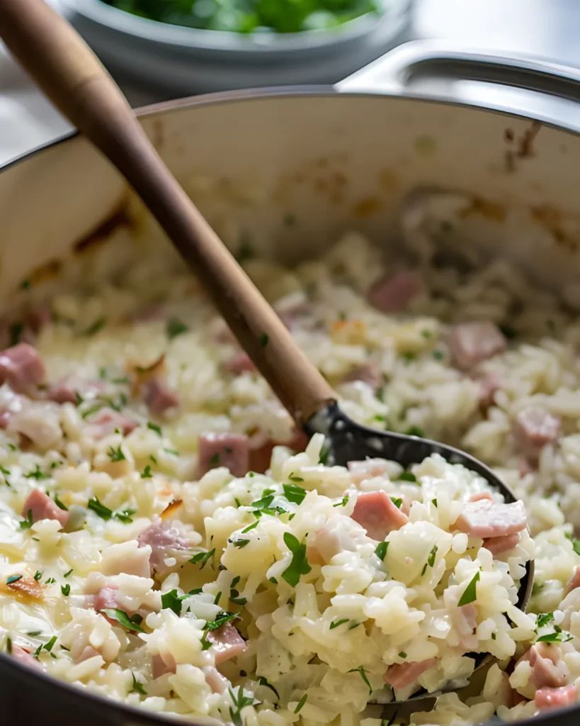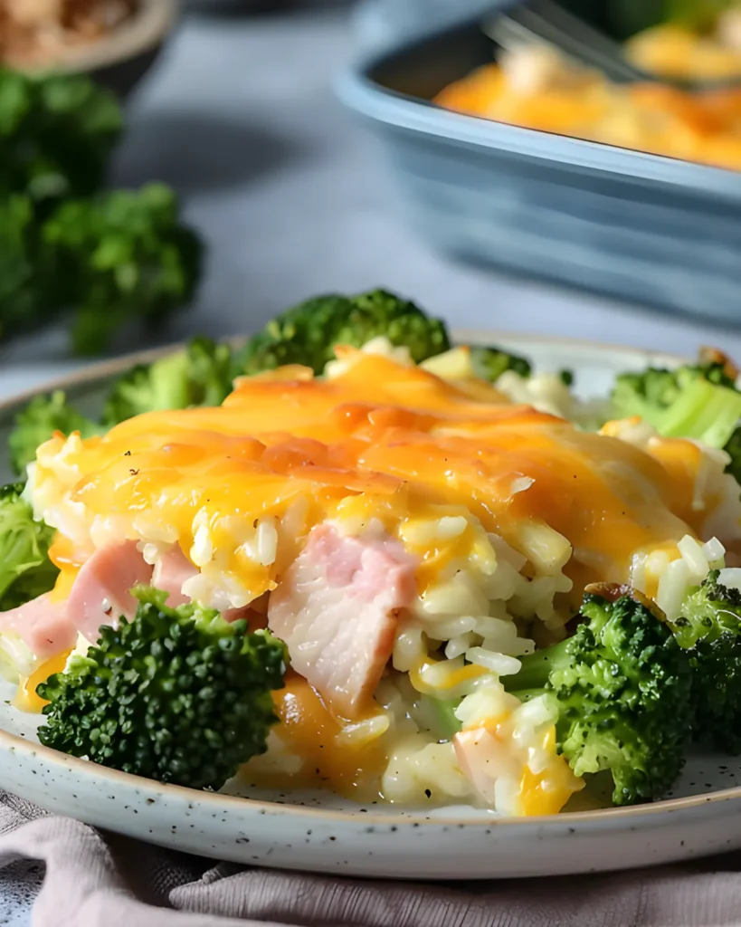 Many home cooks also enjoy bringing this dish to potlucks, family gatherings, or holiday meals. The creamy rice, savory ham, and crunchy topping make it a crowd-pleasing comfort dish that disappears quickly.