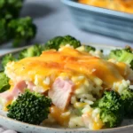 Families love Cheesy Rice and Ham Casserole because it’s simple, filling, and incredibly flexible. You can prepare most of the ingredients in a single pot before transferring everything into a baking dish.