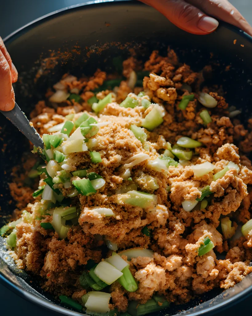 Mix gently using your hands. Stop once evenly combined. Overmixing will toughen the texture.