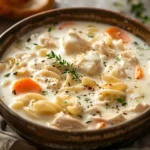 Creamy Chicken Noodle Soup is a comforting homemade soup made with tender chicken, egg noodles, vegetables, and a rich creamy broth. Perfect for cozy dinners and easy family meals.