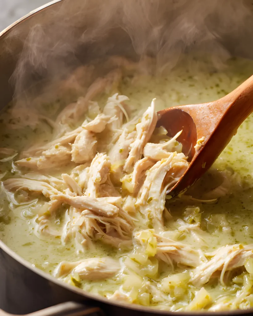 Start by placing chicken, green enchilada sauce, and chicken broth into your slow cooker. Cook on low for 6–8 hours. Once the chicken becomes tender, shred it and return it to the pot. Then, add cream, cheeses, and salsa verde. Stir until everything melts into a smooth, creamy texture.