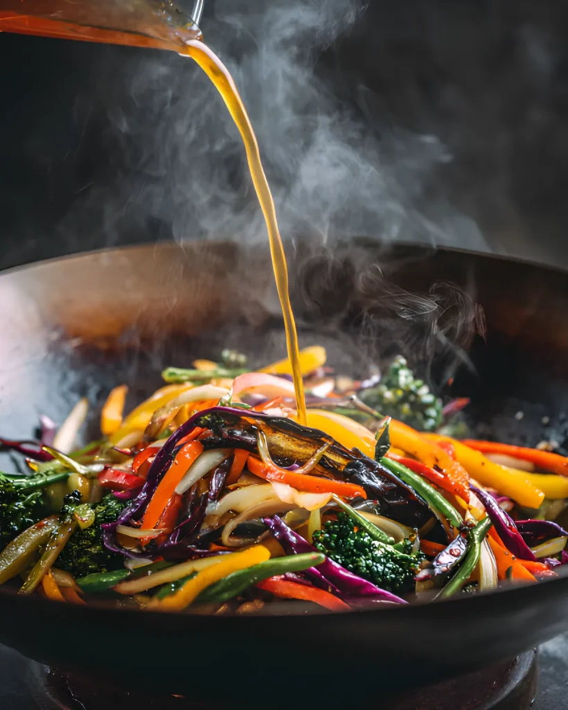 The sauce ingredients—soy sauce, hoisin sauce, chili sauce, rice vinegar, and sugar—create the perfect balance of salty, sweet, tangy, and spicy flavors.