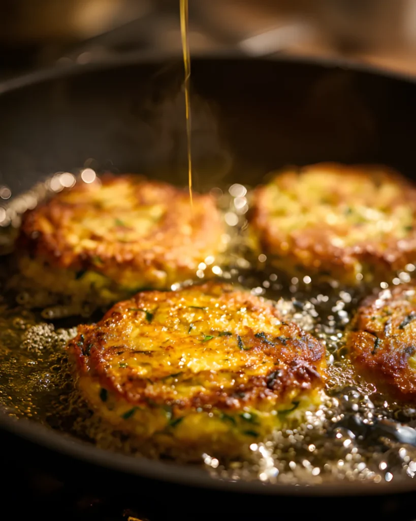 Olive oil also matters. Heat it properly before adding the batter. When the oil reaches medium heat, it creates that immediate sizzle. That sound signals the beginning of perfectly crispy zucchini fritters. If the oil stays too cool, the fritters absorb it instead of crisping.