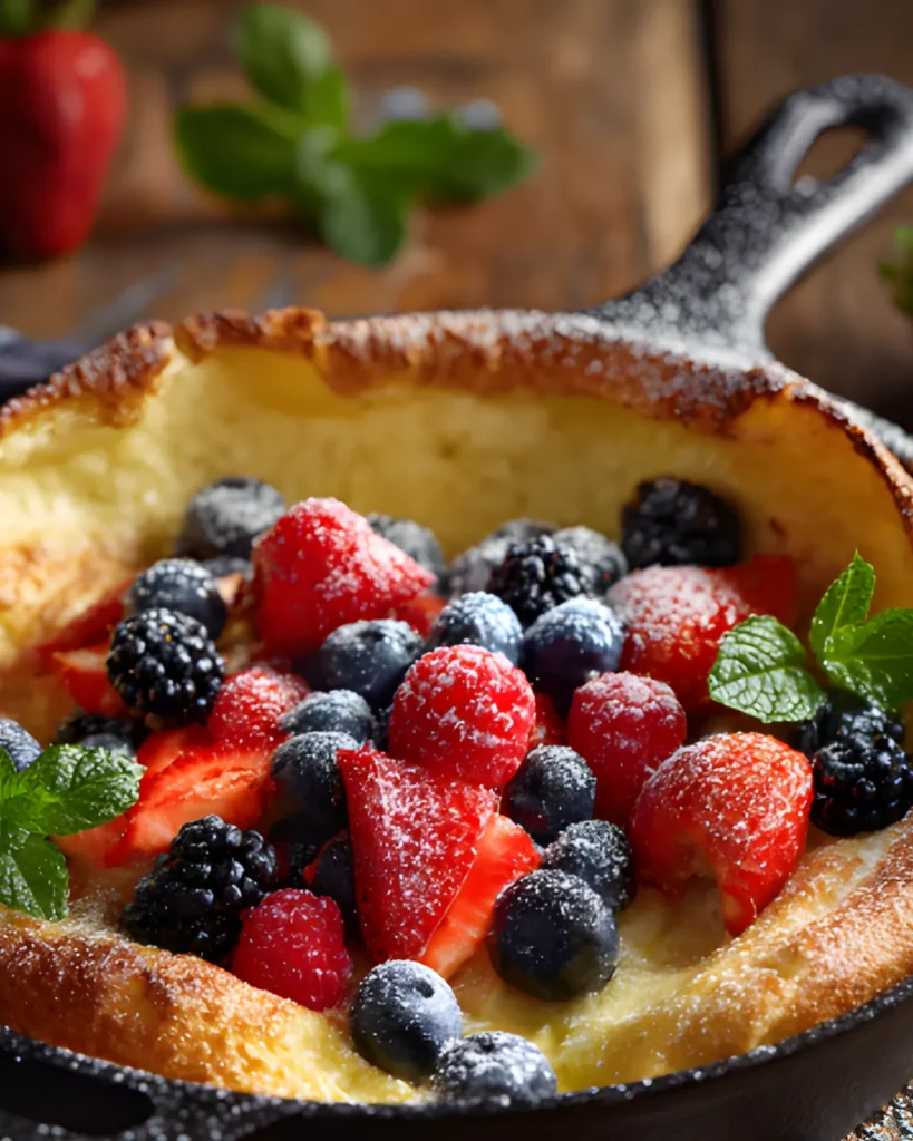 Because this Dutch baby pancake recipe relies on a simple batter, quality matters. Always use fresh eggs and real butter for the best results. If you enjoy experimenting with breakfast recipes, you might also love trying something comforting like this fluffy-pancake-recipe which pairs perfectly with similar toppings.