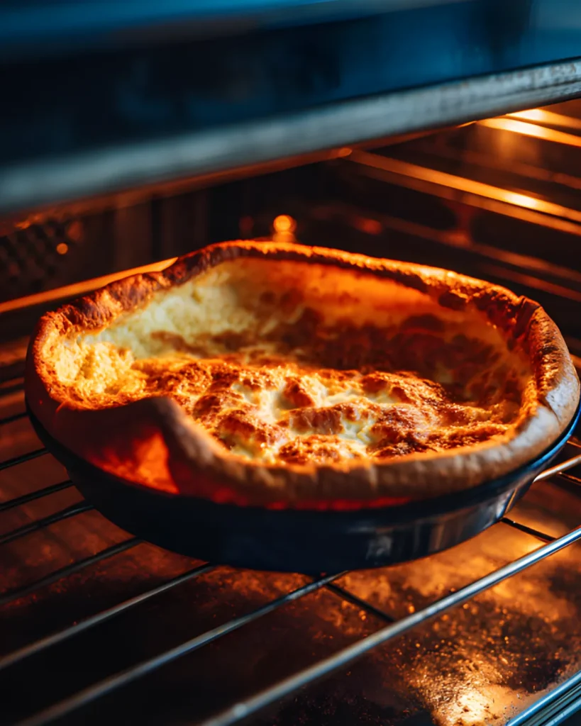 Bake for 15 to 20 minutes. During this time, the pancake will puff dramatically. Avoid opening the oven door, as temperature changes can cause it to collapse.