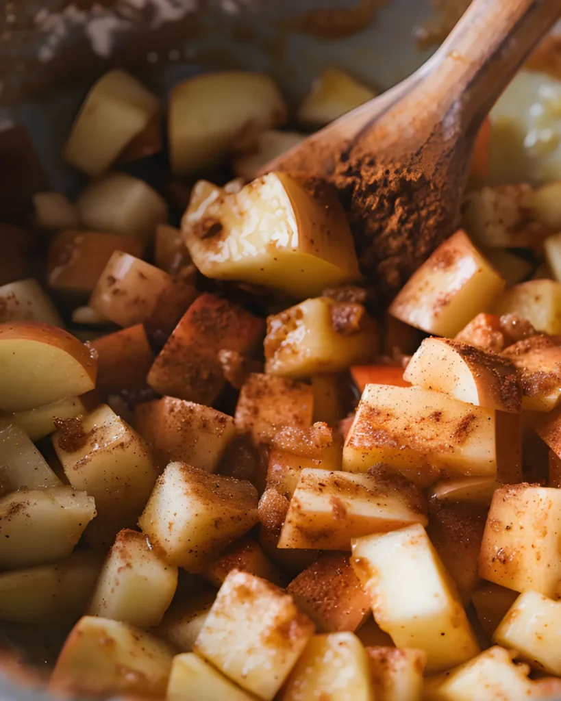 First, preheat your oven to 350°F and grease a 9×13-inch baking dish. Next, cut the biscuit dough into bite-sized pieces. Then, combine the diced apples, dough pieces, sugar, and cinnamon in a large bowl. Stir thoroughly so every piece gets coated.