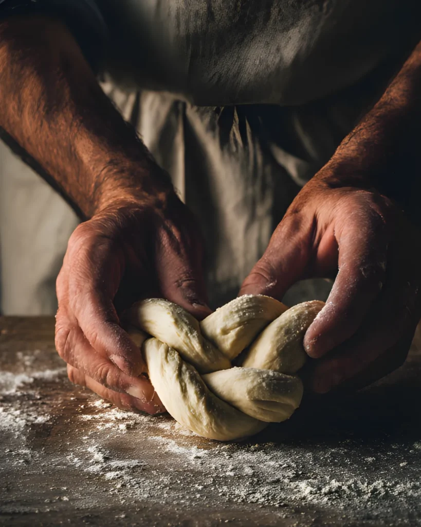 Next, roll each piece into a long rope, about 24 inches. While doing this, apply gentle pressure and move your hands outward. This technique helps create a smooth and even rope without tearing the dough. Then, form a U-shape, cross the ends over each other, twist them once, and press them onto the bottom curve. That classic pretzel shape defines any simple pretzel recipe.