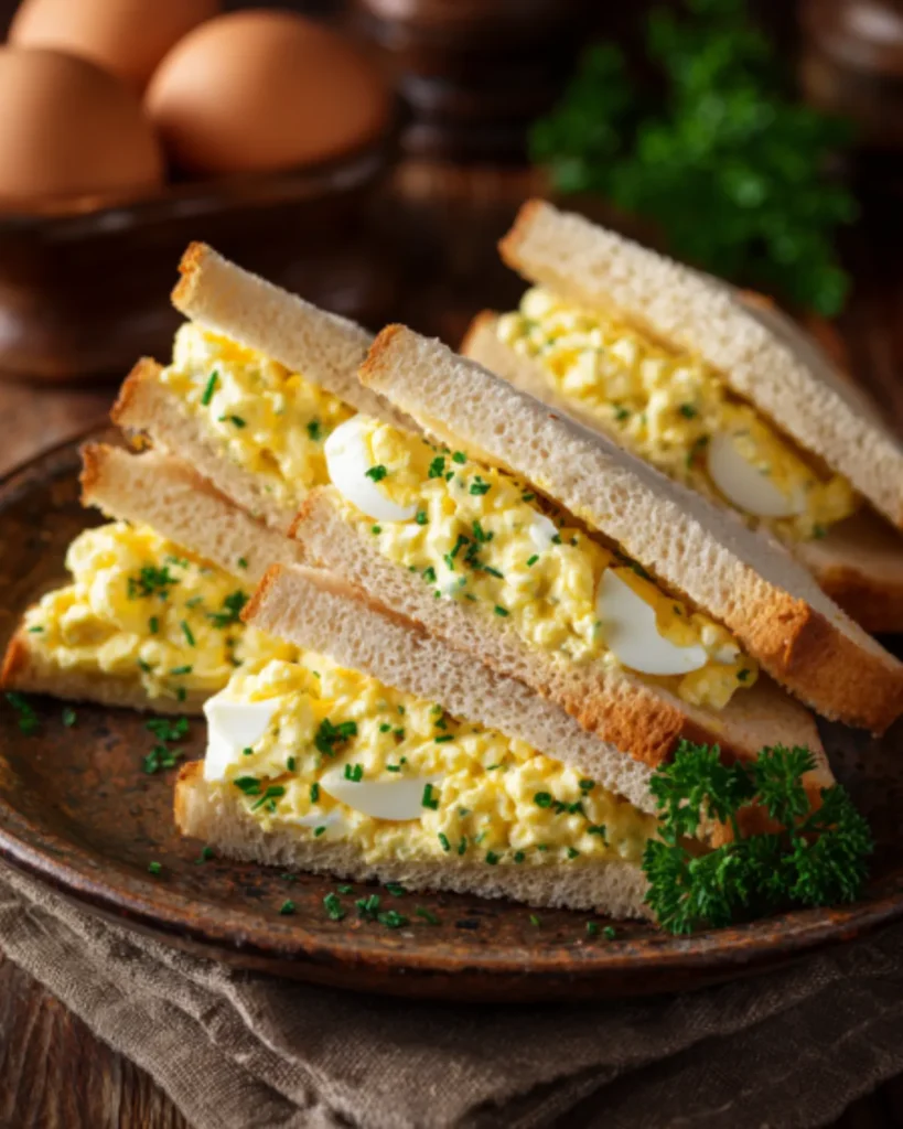 Tea party sandwiches make egg salad feel elegant and festive. You can prepare them ahead of time and serve them chilled on a platter.