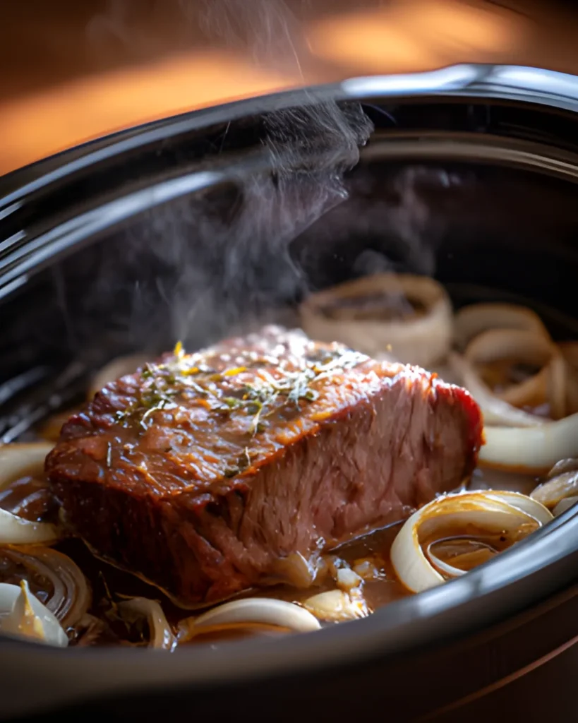 First, always choose a well-marbled beef roast. Cuts like chuck roast work best because they become tender during slow cooking. Next, slice the onion evenly so it melts into the broth as it cooks. This step creates a deeper, richer flavor.