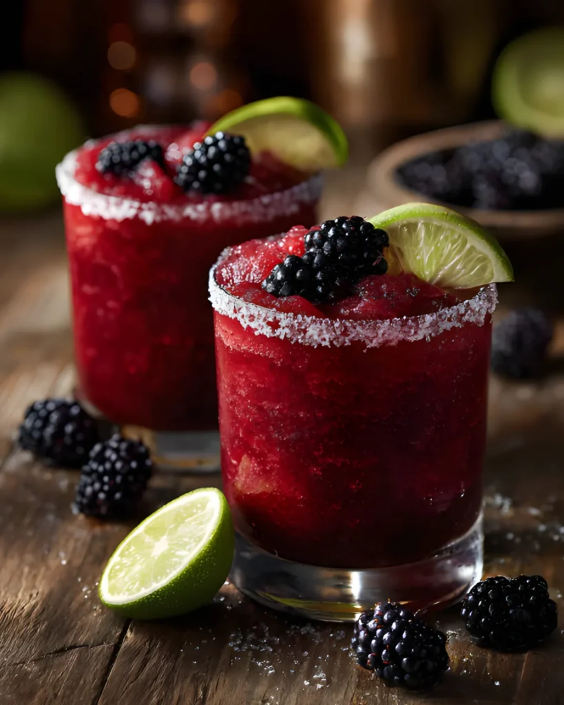 A refreshing frozen blackberry margarita made with fresh lime juice, tequila, and natural sweetness.