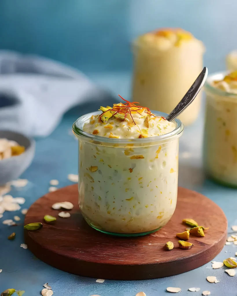 Cardamom powder and crushed saffron transform this into true Indian overnight oats. These spices add warmth, aroma, and subtle sweetness. As a result, you don’t need excessive sugar. However, you can always adjust sweetness before serving.