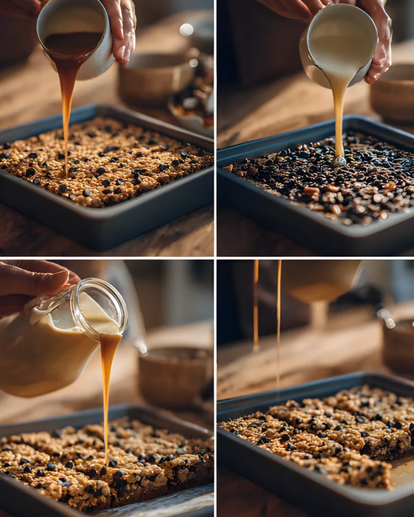 After that, drizzle the EAGLE BRAND Sweetened Condensed Milk over the entire pan. Finish with the vanilla extract. The milk ties the layers together and creates the rich texture that makes these bars so memorable.