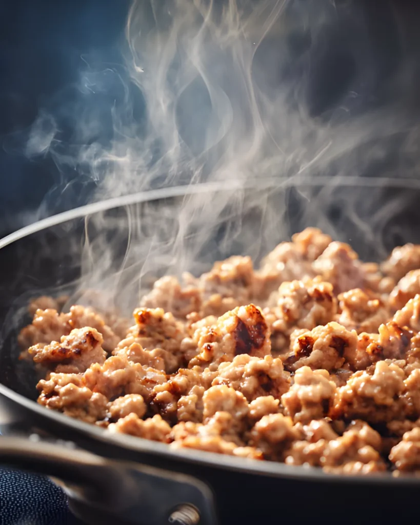 3. Heat olive oil in a skillet and cook sausage until browned, then drain fat