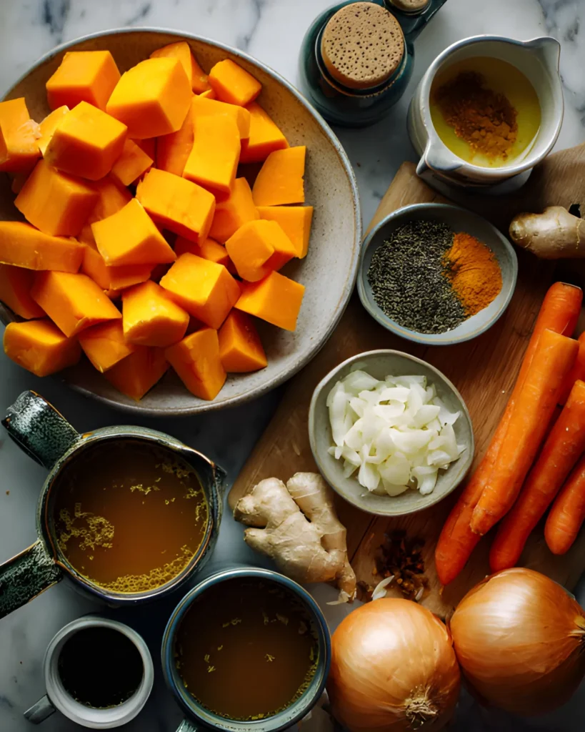 What makes this pumpkin ginger soup healthy is that it’s made with real, fresh vegetables—no cream or butter required. The base starts with olive oil, diced onions, sliced carrots and celery—each bringing subtle depth. Fresh garlic and ginger create a flavor backbone that turns this from bland to bold. And pumpkin? It’s the star. Whether you’re using pie pumpkin, sugar pumpkin, or another variety, it gives the soup its rich texture and color.