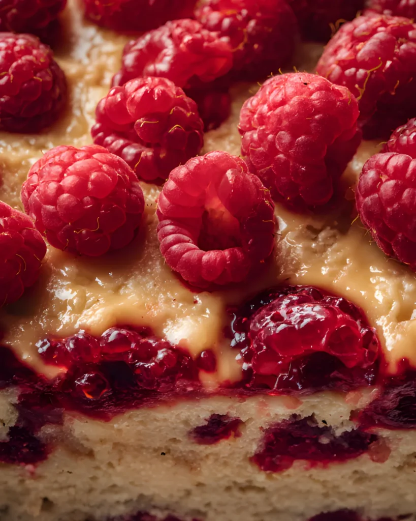 Layering also matters. Spread the raspberry jam evenly and gently place fresh raspberries on top. Then, add the remaining batter carefully so you don’t disturb the layers. A light swirl creates a beautiful marbled effect without blending everything together.