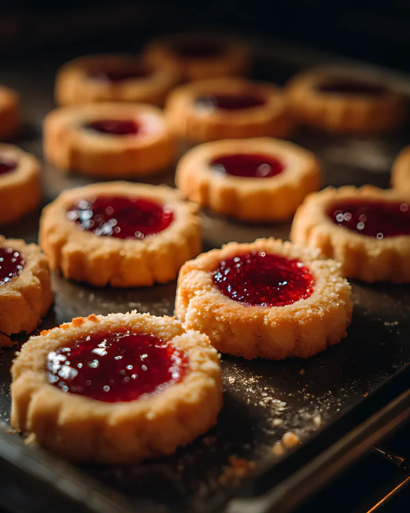 When selecting raspberry jam, choose a high-quality seedless variety. The smoother texture helps the jam sit neatly in the cookie centers.