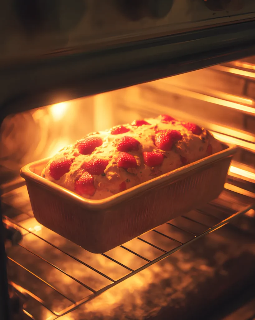 Always preheat your oven to 350°F before placing the loaf inside. A properly heated oven helps the bread rise evenly from the start. As the loaf bakes, the strawberries release moisture, creating a soft and tender texture.