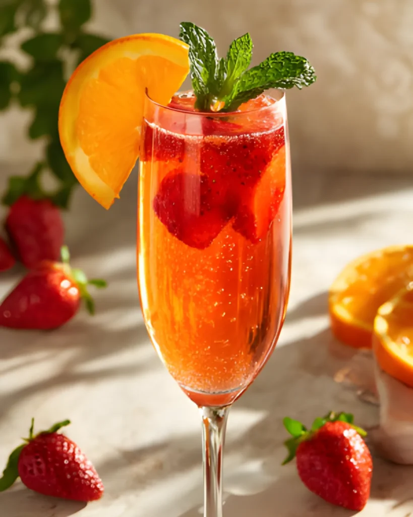 Finally, garnishes like fresh strawberries, orange slices, and mint leaves elevate both flavor and presentation. These small touches transform your strawberry mimosa mocktail into a drink that looks just as good as it tastes.
