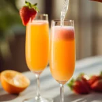 A refreshing strawberry mimosa mocktail made with fresh strawberries, orange juice, and sparkling soda. Perfect for brunch and parties.