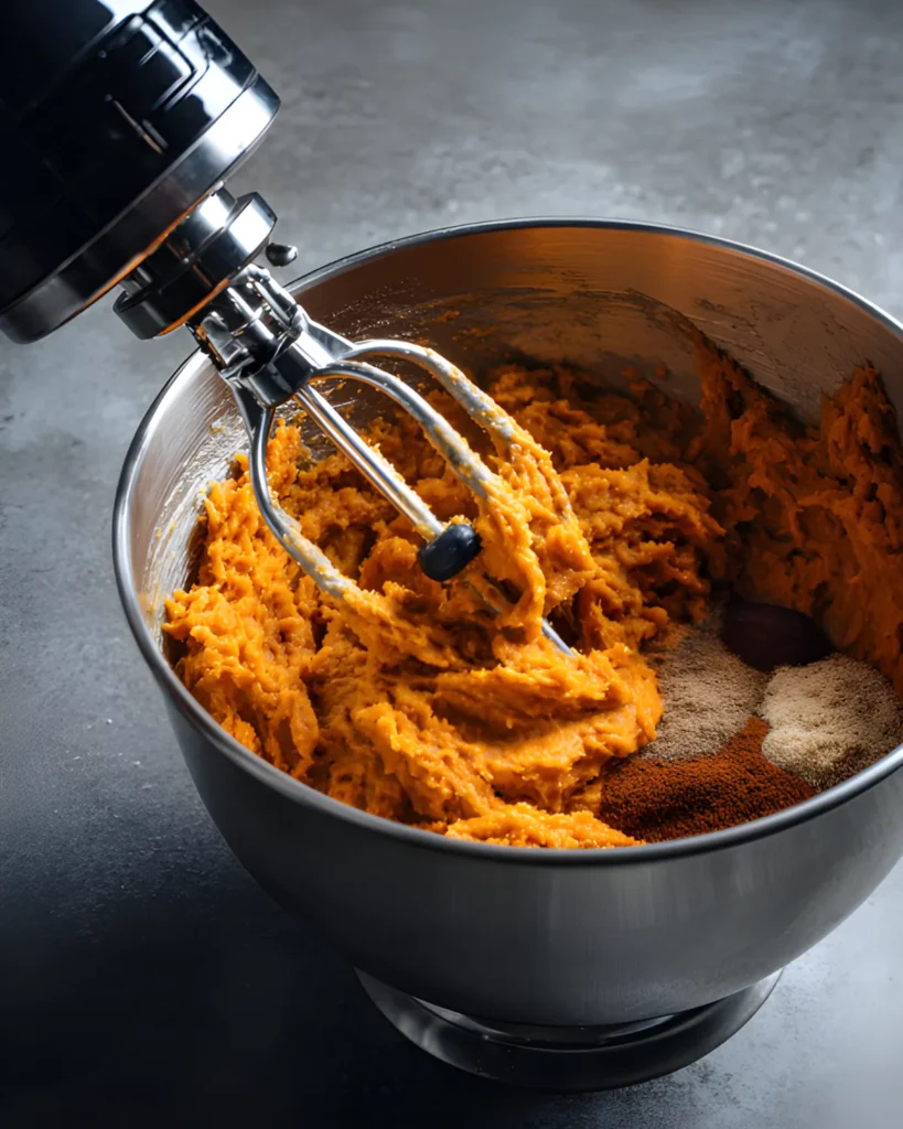 The base calls for just seven ingredients: 2 roasted sweet potatoes, a bit of unsweetened vanilla almond milk, a spoonful of almond butter, maple syrup, cinnamon, vanilla extract, and ground flaxseed. These all come together to form a soft, whipped blend that feels indulgent but delivers steady energy thanks to the fiber-rich sweet potatoes and healthy fats from almond butter and flax.