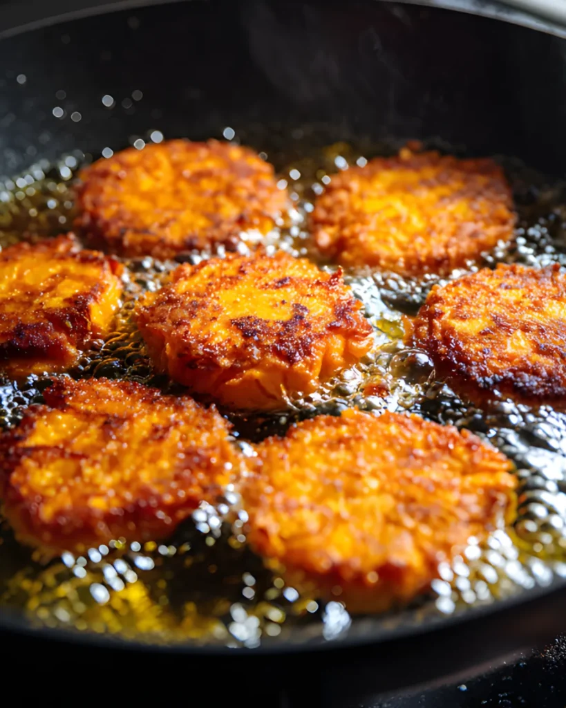 Additionally, avoid overcrowding the pan. Cooking in batches allows each fritter to crisp up properly. As a result, you get evenly cooked and golden sweet potato fritters every time.