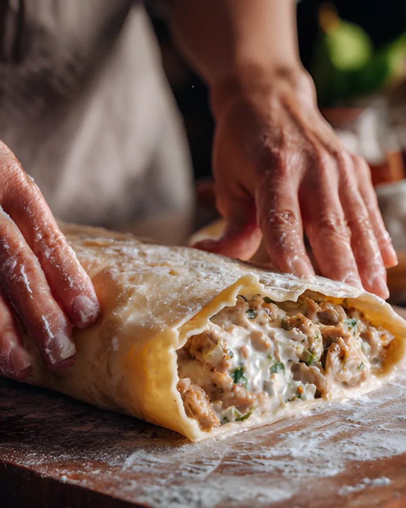 After that, spread the mixture evenly over each tortilla. Leave a small border around the edges to prevent overflow. Then, roll each tortilla tightly into a log. This step is important because tight rolls create clean, neat pinwheels.