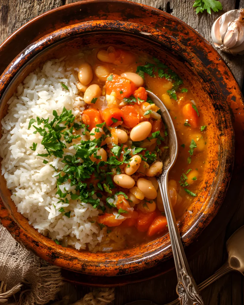 Serving a warm bowl of white bean and sausage stew feels like bringing comfort straight to the table. Traditionally, you serve this dish over fluffy white rice, which absorbs the rich broth and balances the smoky flavors perfectly.