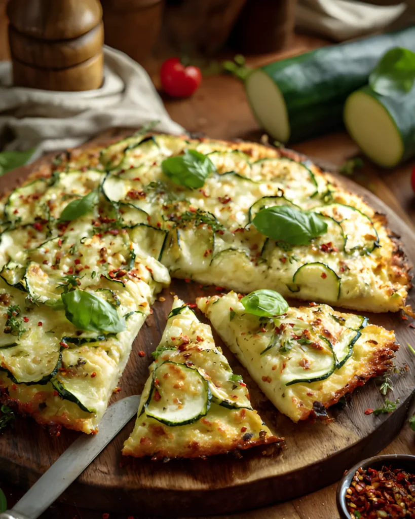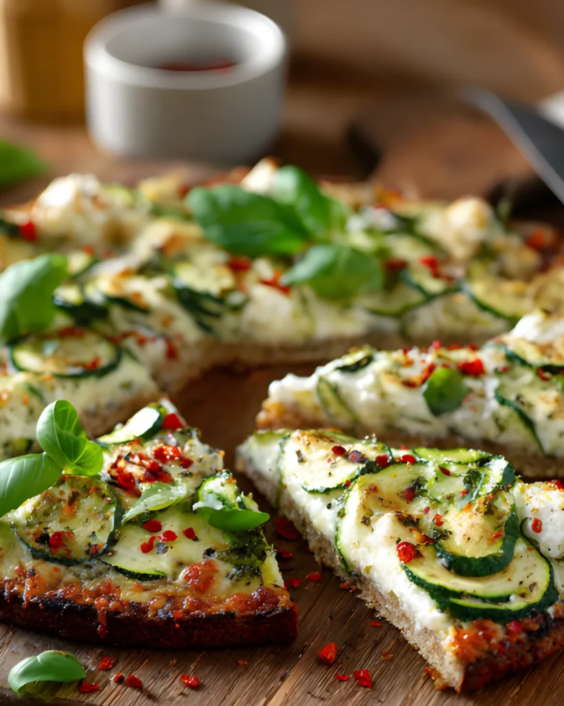 Vegan Zucchini Pizza Crust and Cheese Flatbread Twist